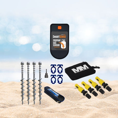 - Practical items like awning tie-downs, levelling blocks or tire covers