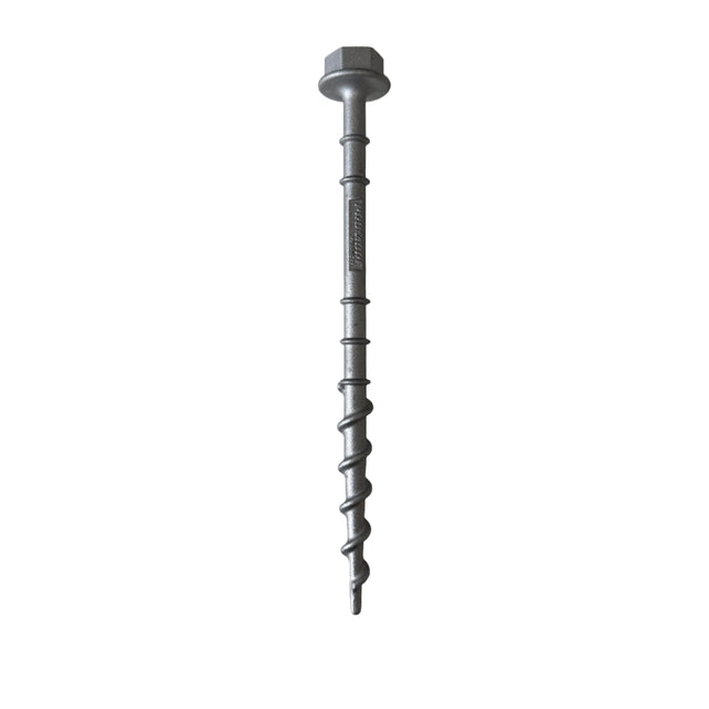 The peg has a 19mm hex head that allows for a quick insertion and removal process with a cordless drill and a spiral structure to get that extra stability on any tough surface. Great for drilling down your guy ropes for your bed flies or bag awnings.